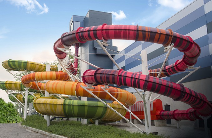 3. Disco Slide (11 m hoog): Hier in deze glijbaan kan je je eigen muziek kiezen. Er zijn ook discolampen aanwezig waardoor het ritje een echte party is.