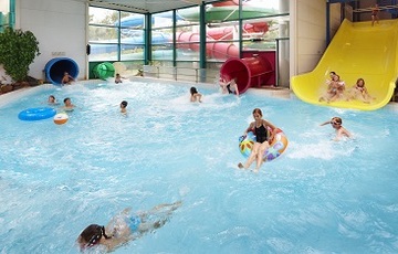+ Openluchtzwembad maar ook een gedeelte binnen (gewoon bad, bubbelbad)