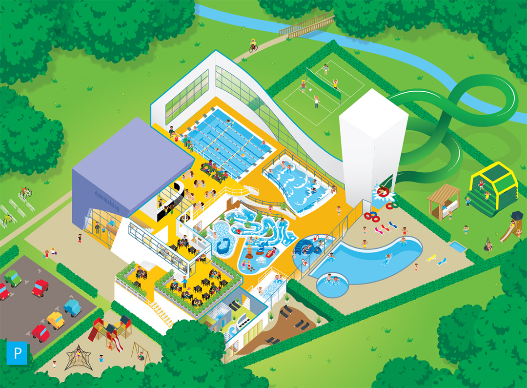- Gevaarlijke wildwaterbaan ( je mag er pas in boven de 1m 50 )